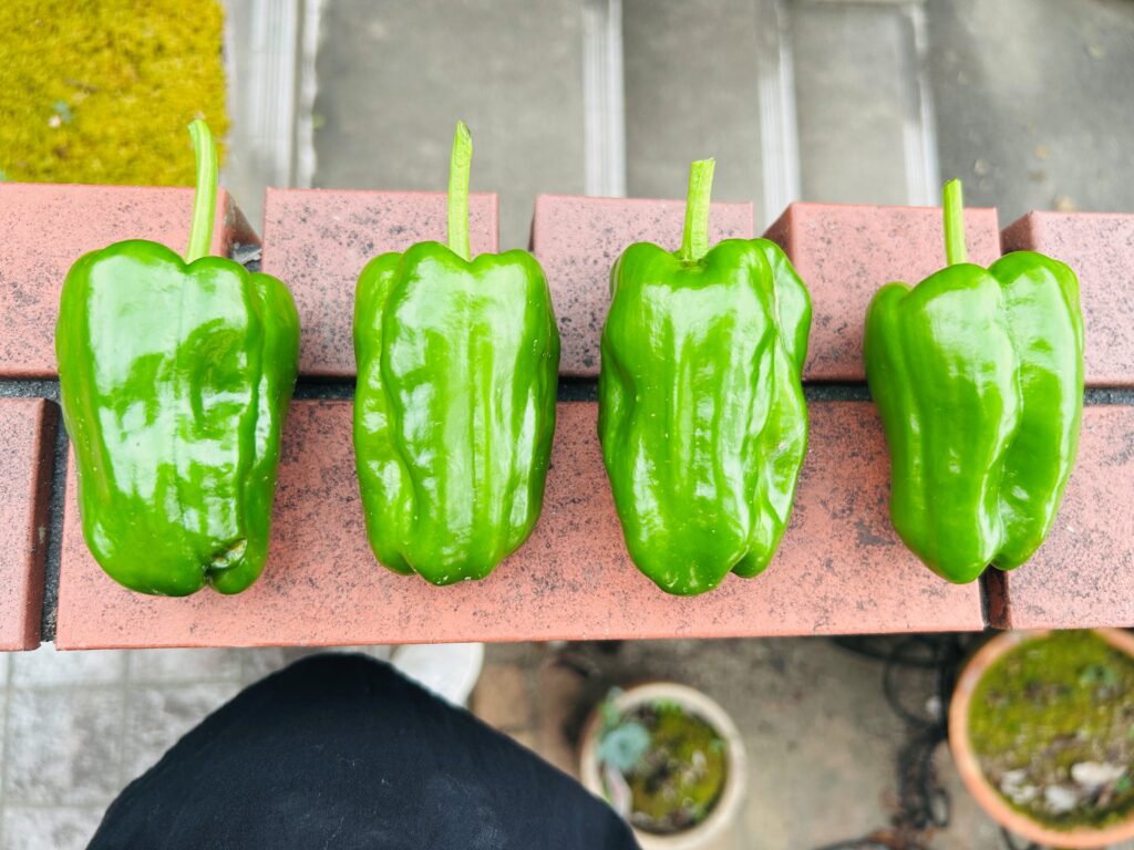 今年になり、また植物に触れたいと感じたことから、初めての野菜作りにチャレンジしました。初心者はピーマンからスタートするのが良いと聞き、GW頃から畑を耕しまずは3株から育て始めました。通勤前と仕事終わりに水をあげ(時間が無い日はごめんなさいとパスし)、合計173個のピーマンを収穫することができました。真夏の草抜きや剪定作業、害虫対策は大変でしたがピーマンへの愛着が湧き、自然と触れることで逆に体はリフレッシュされ、美味しいピーマンからも元気をもらうことができました。今年のピーマンは終わりを迎えそうなので、次は何の野菜にチャレンジしようかと考えています。